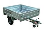 UR-EUROPA CROSS Carrello appendice classe B (e rimorchio) con piano rinforzato in aluminio mandorlato e quattro sponde apribili. Adatto all'uso in campagna. |